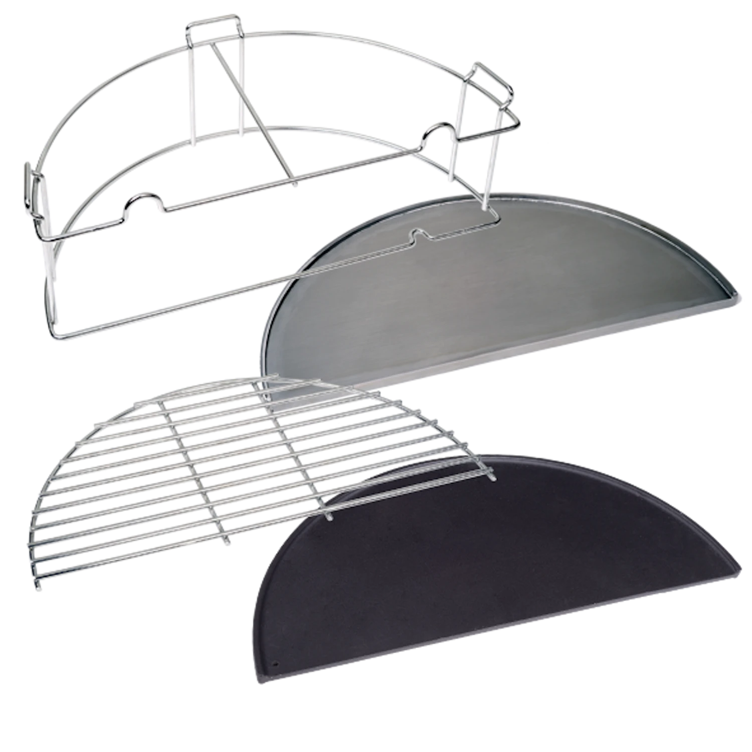 Inhalt: 1x Erhöhung aus Chrom 1x Platte aus Gusseisen 1x Edelstahl Grillplatte 304° 1x Edelstahl Grillrost 304°