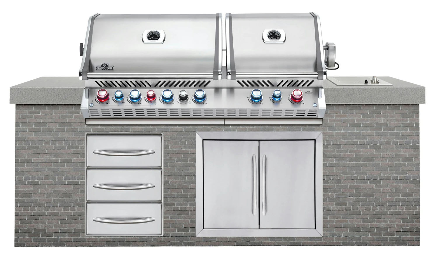 Der Napoleon® Einbaugrillaufsatz BIPRO825 ist die perfekte Vollendung ihrer Outdoorküche auf kompromisslosem Spitzenniveau. Der BIPRO825 bietet alles, was Sie für professionelles Grillen benötigen: Zwei getrennte Grillbereiche, eine Drehspieß-Vorrichtung und einen separaten Infrarot SIZZLE ZONE™ Bereich mit Temperaturen von bis zu 800°C für perfekte Steaks. Grillfläche 72+47 x 46 cm