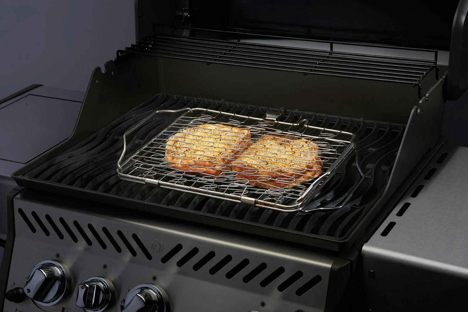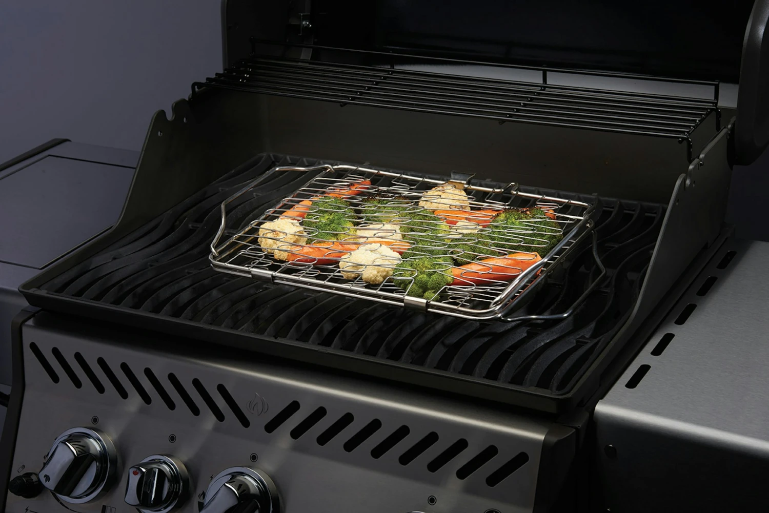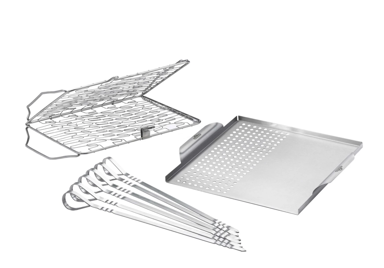 Das NAPOLEON Starter-Set für Fisch- & Meeresfrüchte -Liebhaber beinhaltet einen multifunktionalen Edelstahl Grill-Topper, einen flexiblen Edelstahl Grill-Korb und sechs Edelstahl Spieße. 1x Multifunktionaler Edelstahl Grill-Topper 1x Flexibler Edelstahl Grill-Korb 6x Edelstahl Spieße (33,5 cm)